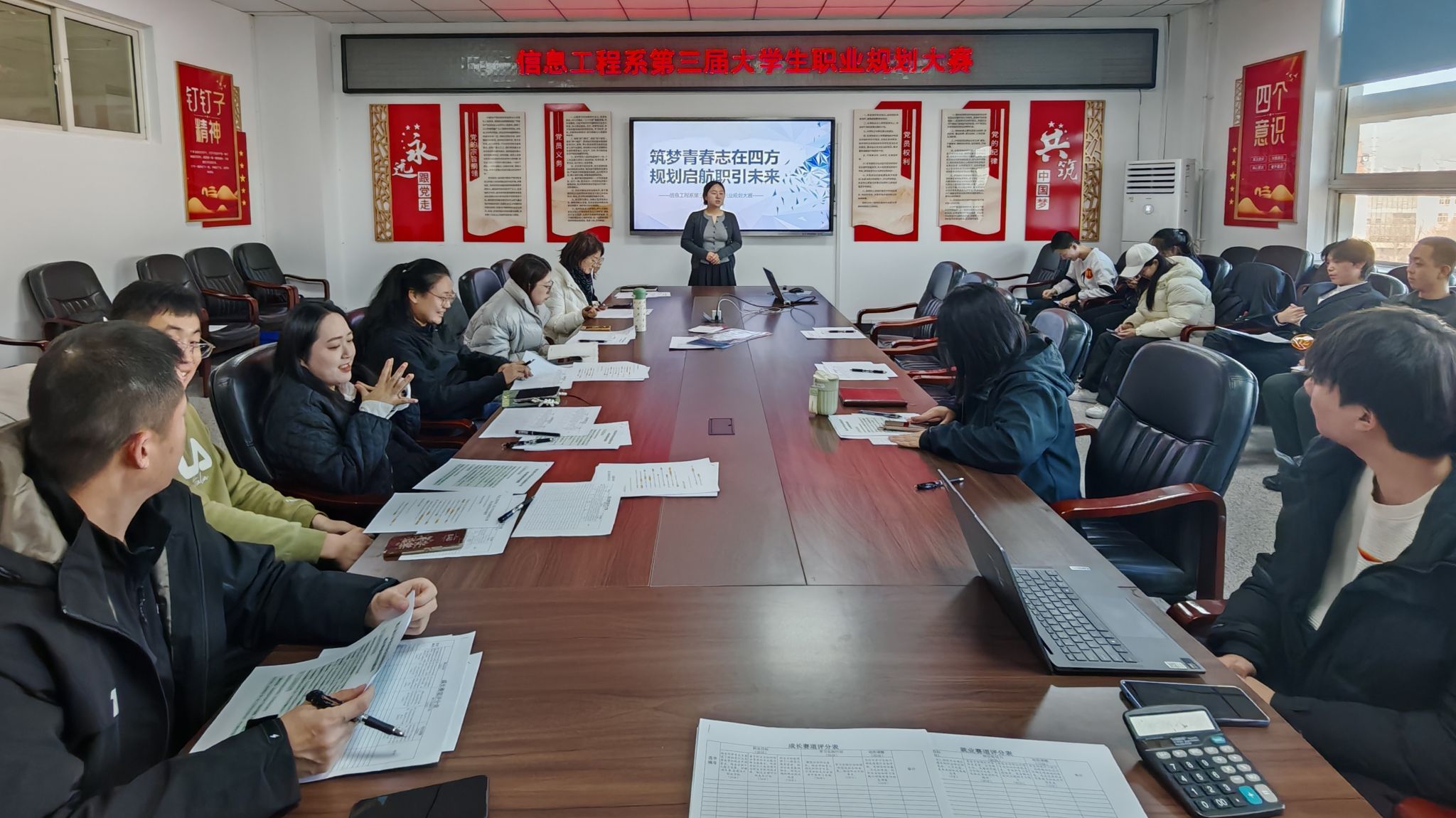为深入贯彻落实国家关于高校毕业生就业工作的决策部署,引导大学生科学规划职业生涯,将个人理想追求主动融入国家发展和时代洪流,实现以赛促学、以赛促就的目标,信息工程系于11月13日在综合实训楼502会议室成功举办了以“筑梦青春志在四方,规划启航职引未来”为主题的第三届大学生职业规划大赛。大赛由刘新老师主持,信息工程系党总支书记王喜华、全体辅导员及初赛入围选手参与。活动伊始,主持人刘新老师首先介绍了本次大赛的背景、...