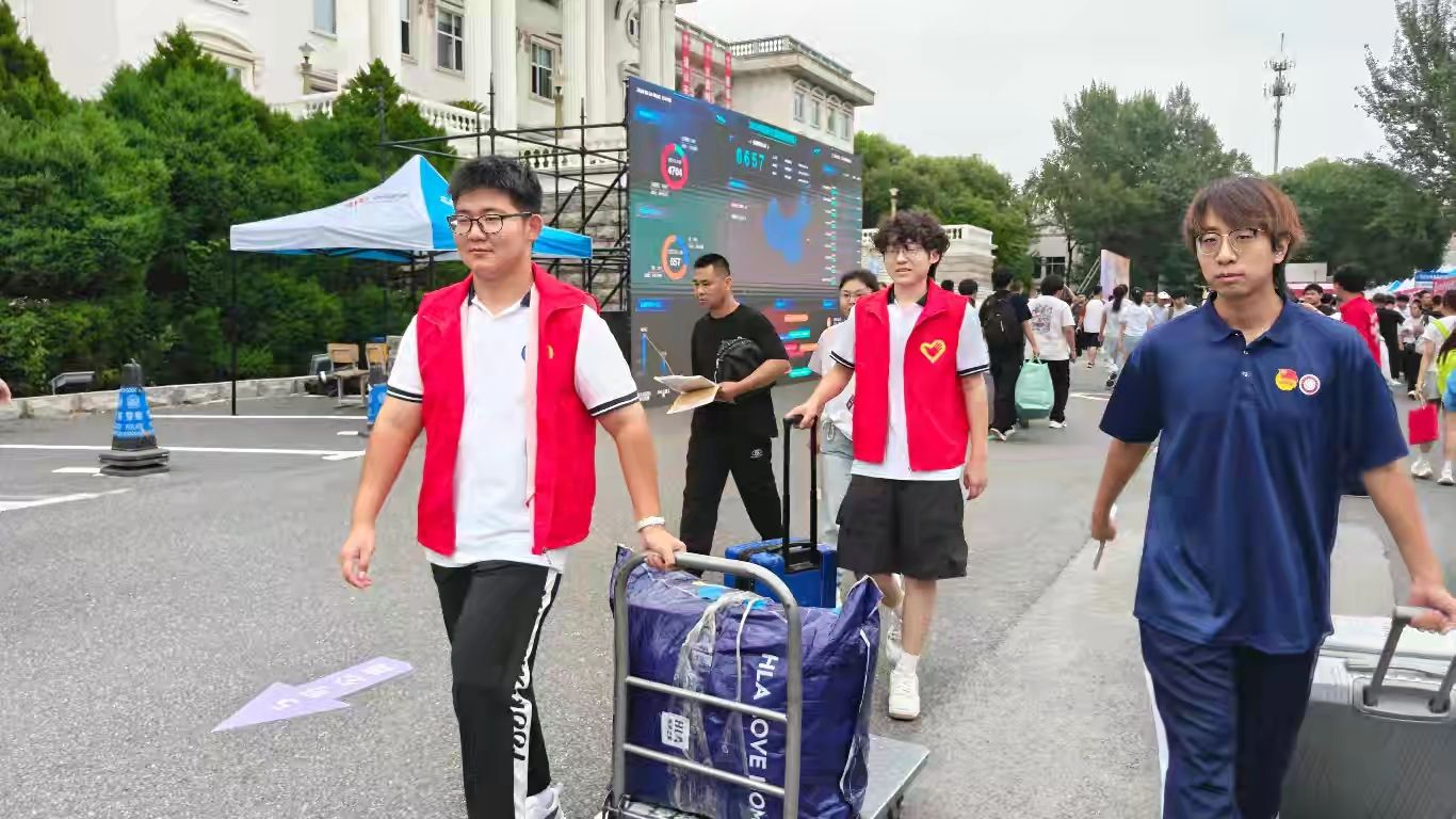 用真诚化解陌生,以奉献传递温度。在低空技术与工程系的迎新点位,团学干部与志愿者组成的“青春志愿队”全程坚守。他们提前梳理报到流程、标注关键指引,主动上前为新生提行李、讲手续,在迎新点与宿舍区之间往返穿梭。即便汗水浸透衣背,脸上的笑容依旧明亮,用青春活力将低空系的关怀,实实在在送到每一位新同学心中。