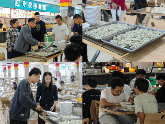 随后,系部领导、辅导员与留校学子一同来到“辽宁交专食堂”,开展“温情陪伴,共筑和谐”双节聚餐活动。食堂里,老师们与同学们在一起吃饺子、聊家常,互相分享双节的喜悦与祝福。