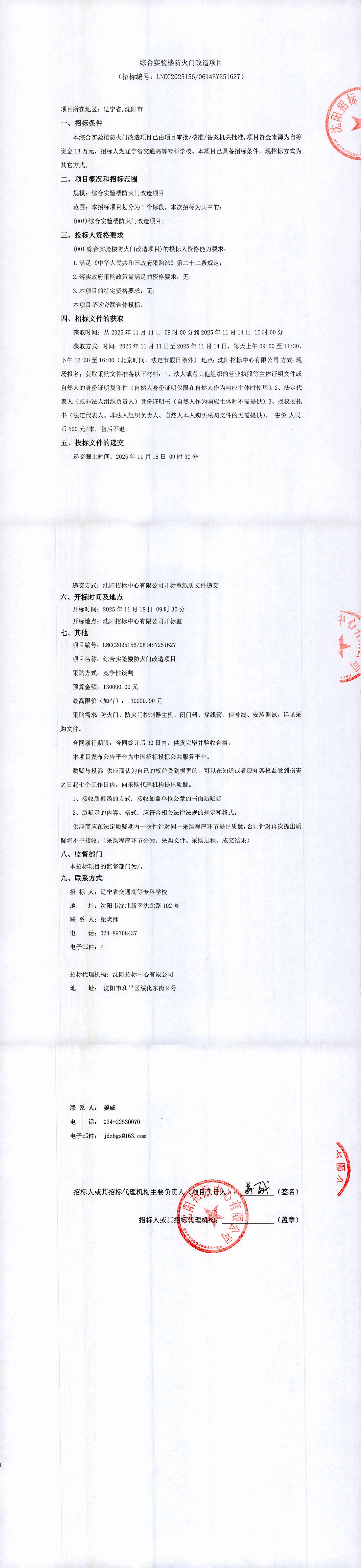 综合实验楼防火门改造项目招标公告(LNCC2025156)