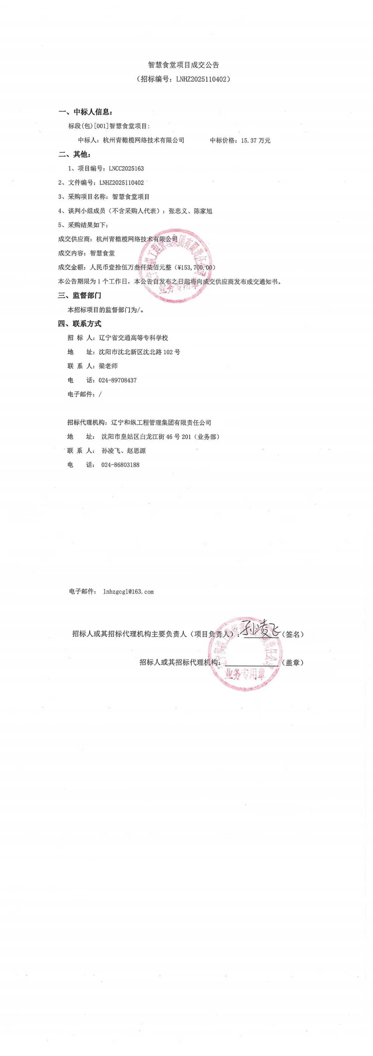 高标准光传输技术设备平台成交公告(LNCC2025159)