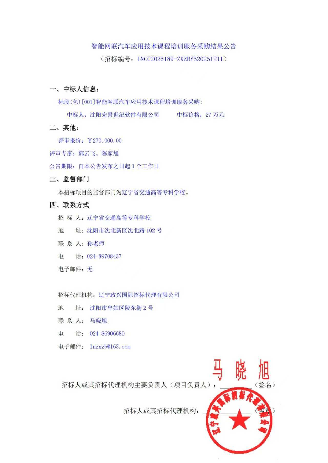 智能网联汽车应用技术课程培训服务采购结果公告(LNCC2025189)