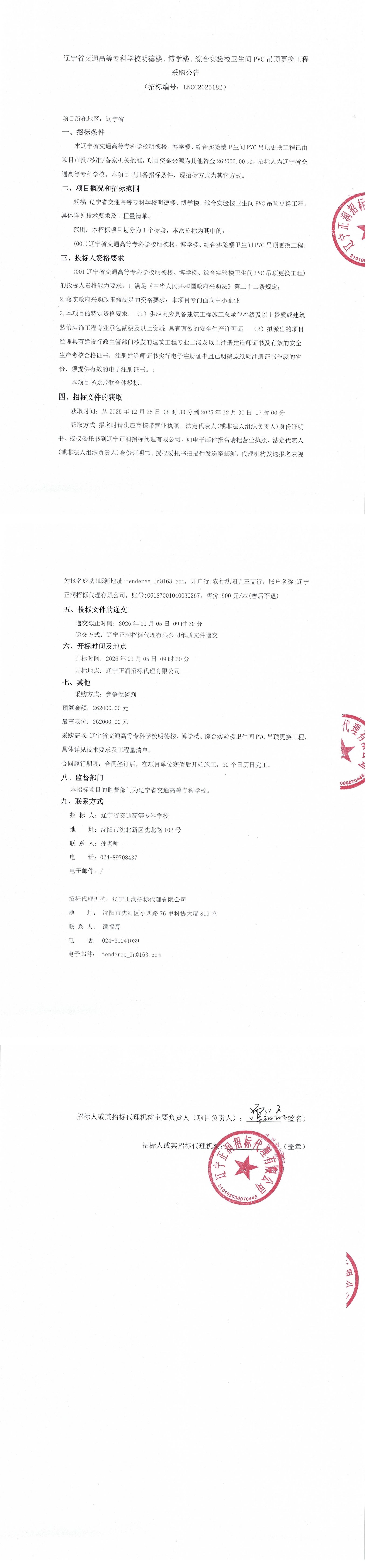 明德楼、博学楼、综合实验楼卫生间PVC吊顶更换工程项目采购公告(LNCC2025182)