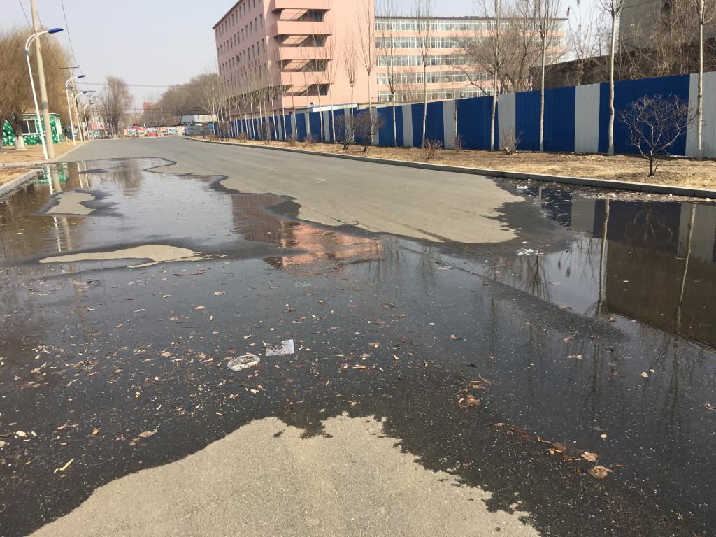当即解决的几个问题:一是建工实验室3楼地面走线,当即安排电工扣盖。二是道桥实验室车用柴油,因没有车照,无法出校门,当即安排沟通可定期去后勤加油。三是建工系一楼楼梯下堆放20几个装有黄土的袋子混有少量垃圾,无系认领责任(图21)。当即通知后勤运走。四是北院理发店没有安全负责人标志当即通知整改。五是汽车系入大门处有电线孔周边没有处理平整(图22),当即沟通。六是物流系三楼北侧有一堆废旧桌椅,经沟通当即挪走。七是北校园内地面渗水情况(图23),经沟通是原抗生素厂管理的一段管线阀门泄露,此时不便修理,需要等停水后进行处理。