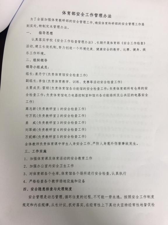4.有关服务师生的措施,体育部为使用场馆的教师准备了桶装水、在休息间备了电吹风和风扇,为教师文体活动如舞蹈班、乒乓球协会、羽毛球协会等提供了场馆和相关的服务。