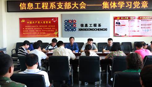 为深入开展“两学一做”学习教育活动,5月30日,信息工程系党总支在A502会议室开展了“两学一做”集体学习《党章》活动,系领导班子成员、全体教师党员以及在校学生党员参加学习活动。