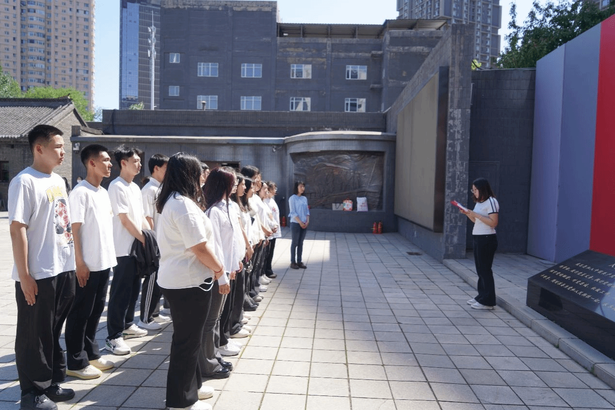 在纪念馆前的广场上,李萌旸老师进行党旗下的宣讲,这堂生动的“行走的思政课”使同学们深刻认识到共产党员为了民族利益和民族解放不怕流血牺牲,向世人展现出无比坚定的共产主义信念、光彩照人的革命品格和坚不可摧的革命意志、崇高的民族气节。随后,学生代表、“心晴社”学生社团成员讲述红色党史故事,同学们从中汲取奋进力量。