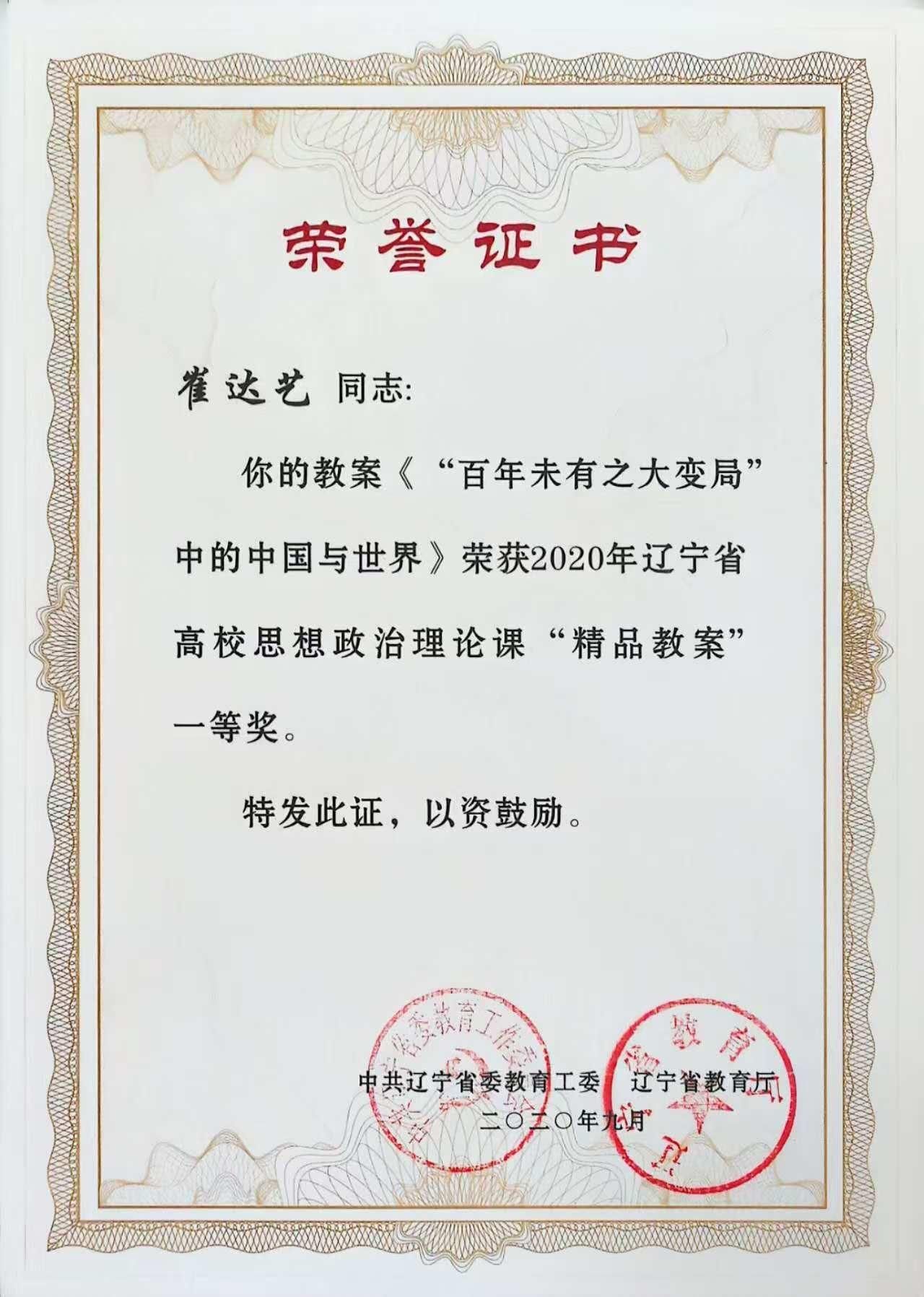 教学成果 当前位置: 首页 > 教学工作 > 教学成果 > 正文 辽宁省高校思想政治理论课“精品教案” 发布时间:2025-12-08 19:01 浏览量: 教师姓名:崔达艺项目名称(赛项全称):辽宁省高校思想政治理论课“精品教案”获奖等级:省级一等奖主办单位(盖章单位):中共辽宁省委教育工委 辽宁省教育厅获奖日期(年月):2020年9月成果佐证: 上一条:第十三届辽宁省高校思想政治理论课教学大赛 下一条:辽宁省高校思想政治理论课“精品教案”