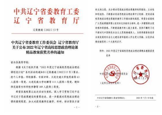 教学成果 当前位置: 首页 > 教学工作 > 教学成果 > 正文 辽宁省高校思想政治理论课“精品教案” 发布时间:2025-12-08 19:01 浏览量: 教师姓名:关旭项目名称(赛项全称):辽宁省高校思想政治理论课“精品教案”获奖等级:省级三等奖主办单位(盖章单位): 中共辽宁省委教育工委 辽宁省教育厅获奖日期(年月):2022年7月成果佐证: 上一条:辽宁省高校思想政治理论课“精品教案” 下一条:辽宁省首届高职高专院校思想政治理论课教师育人成果案例