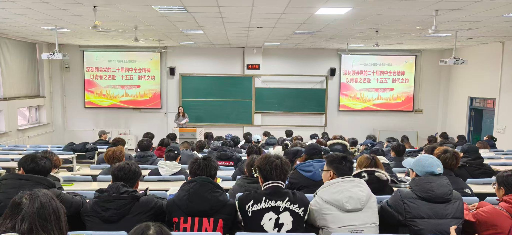 12月11日,吴清洋书记以《深悟党的二十届四中全会精神实质,扛起“十五五”奋进新使命》为题,为全体教师党员讲授党课,引导教师将全会精神融入教学科研与师德师风建设;党总支副书记周海霞以《学思践悟全会精神 实干担当育时代新人》为题,面向学生骨干讲授党课,提出“三个带头”要求,鼓励青年学子在实践中担当作为。两次党课从不同角度引导教师党员、学生骨干将全会精神融入日常工作、学习,以实干践行初心使命。