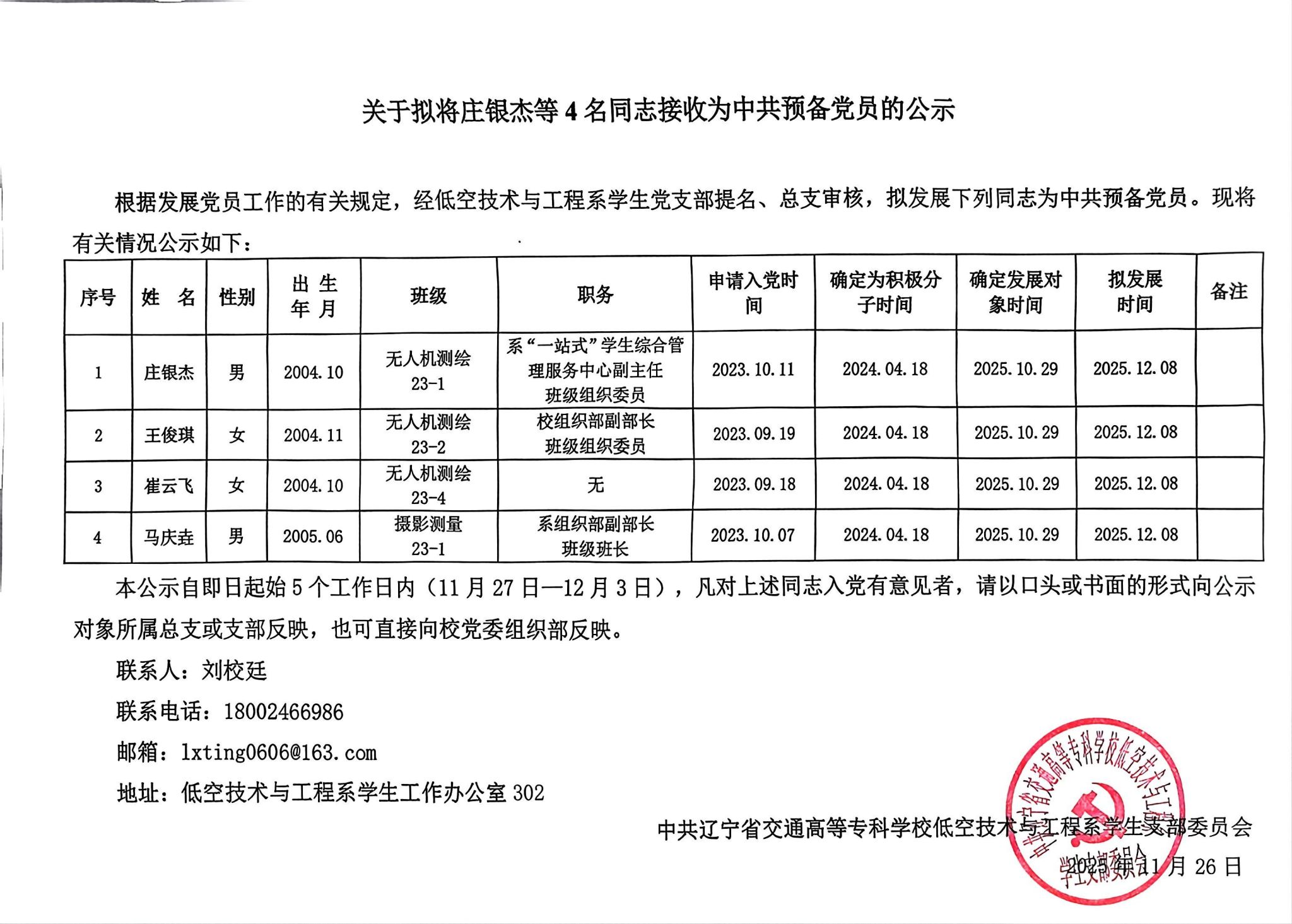 关于拟将庄银杰等4名同志接收为中共预备党员的公示