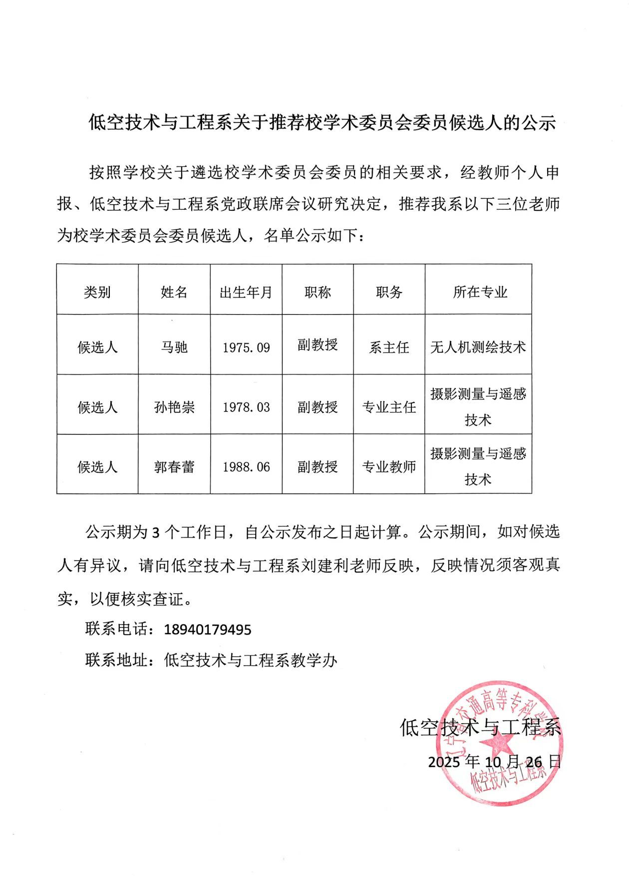 低空技术与工程系关于推荐校学术委员会委员候选人的公示