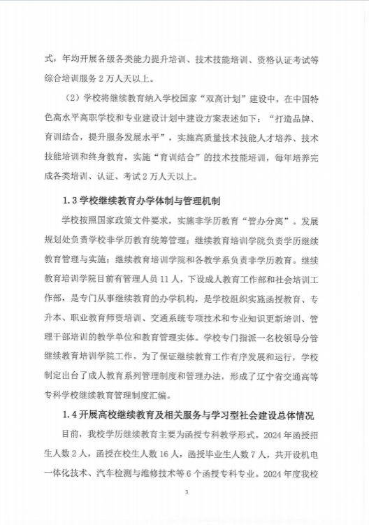 辽宁省交通高等专科学校2024年度继续教育发展报告