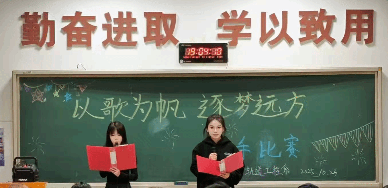 2025年10月23日,轨道工程系以“以歌为帆,逐梦远方”为主题,开展歌唱比赛。同学们通过歌声传递对轨道事业的热爱与逐梦信念,展现学子昂扬向上、勇于追梦的青春风貌,活动营造积极健康、富有活力的系部文化氛围。