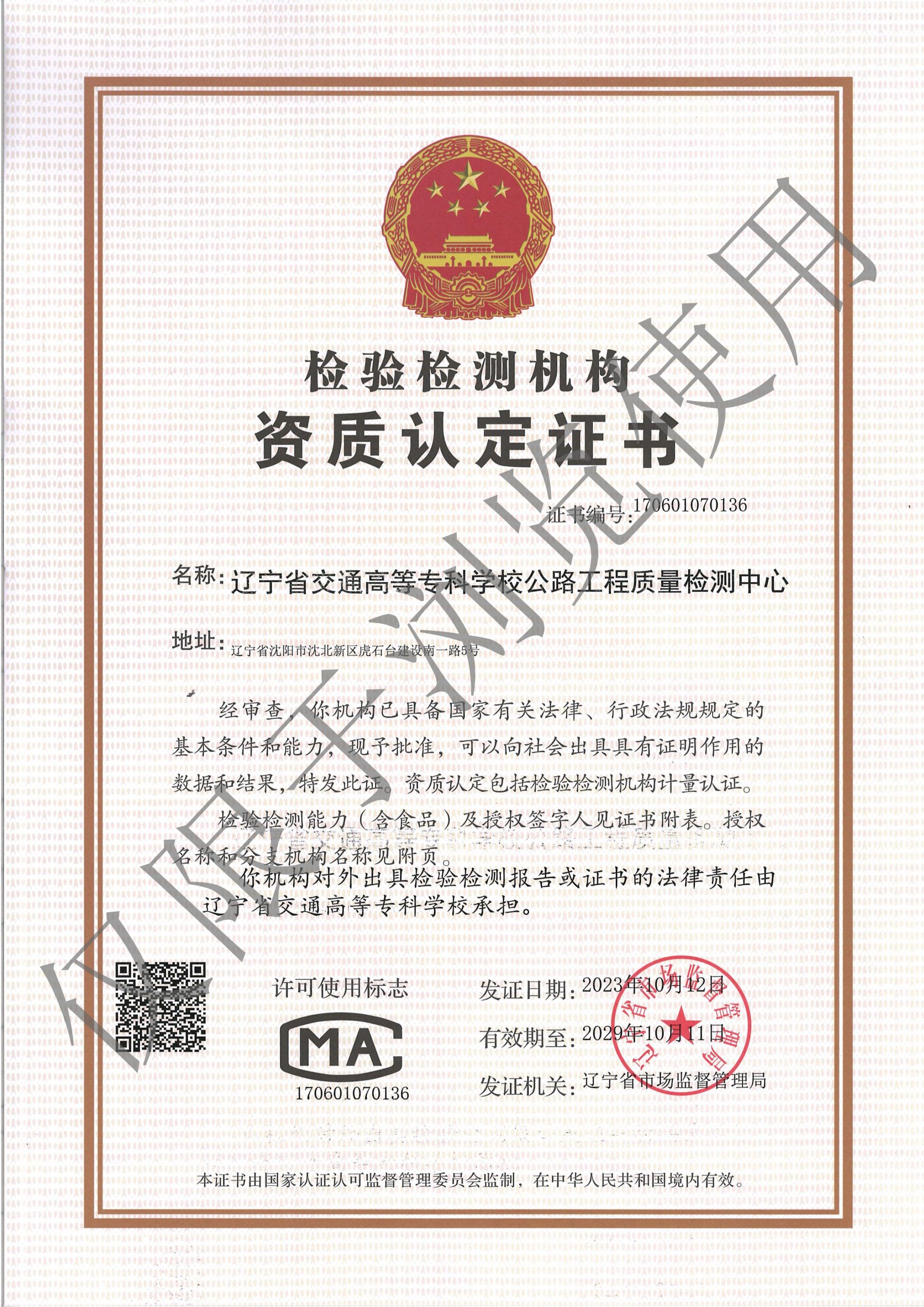 Liaoning Provincial College of Communications,Highway engineering quality inspection center