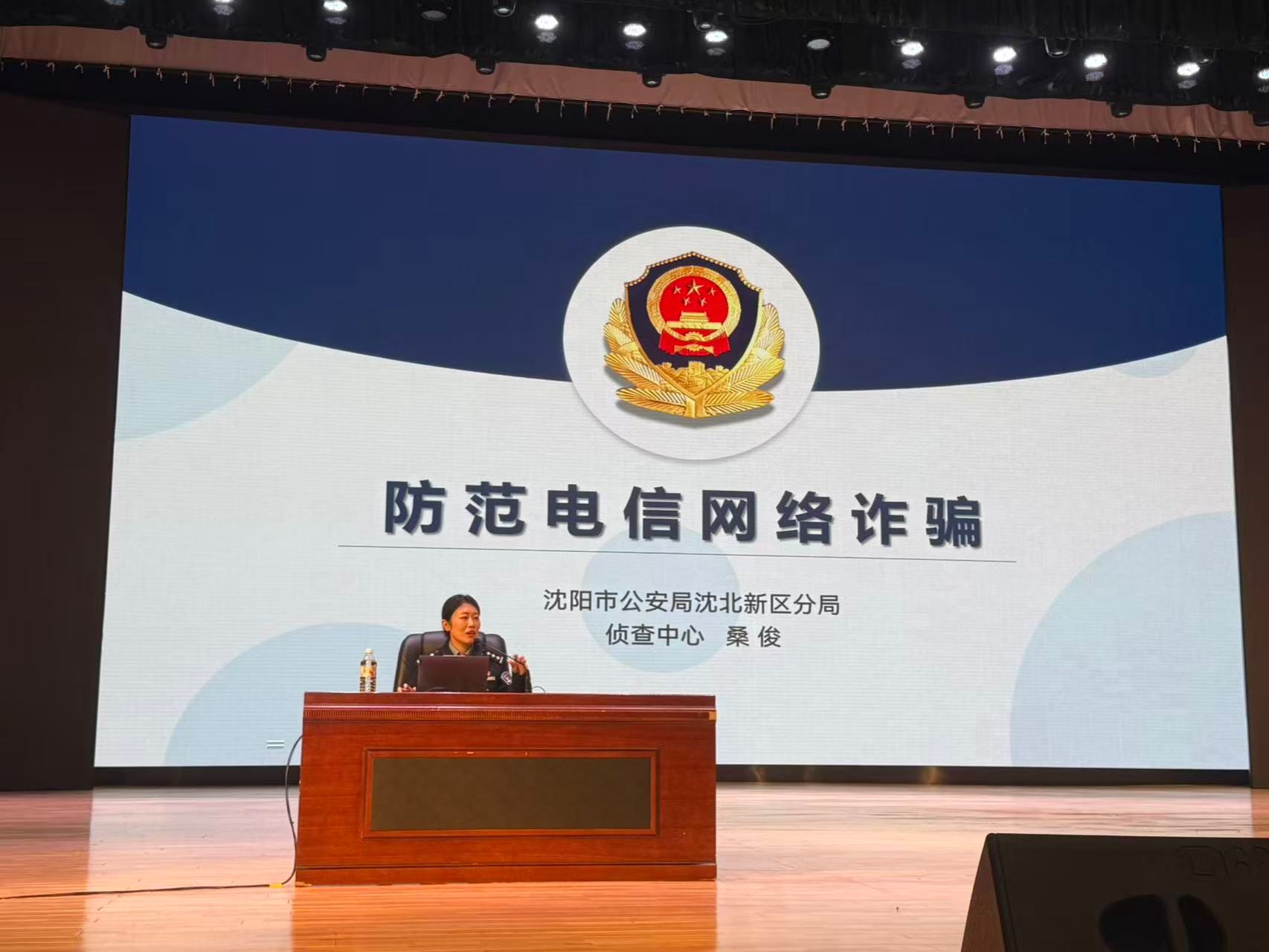 为切实提升我校学生的防范电信网络诈骗意识和能力,筑牢校园安全防线,4月2日下午,学校安全保卫处、学生工作处联合沈阳市公安局沈北分局侦查中心,在学校礼堂成功举办防范电信网络诈骗宣传教育培训。各系辅导员及学生代表共计800余人参加了此次培训。