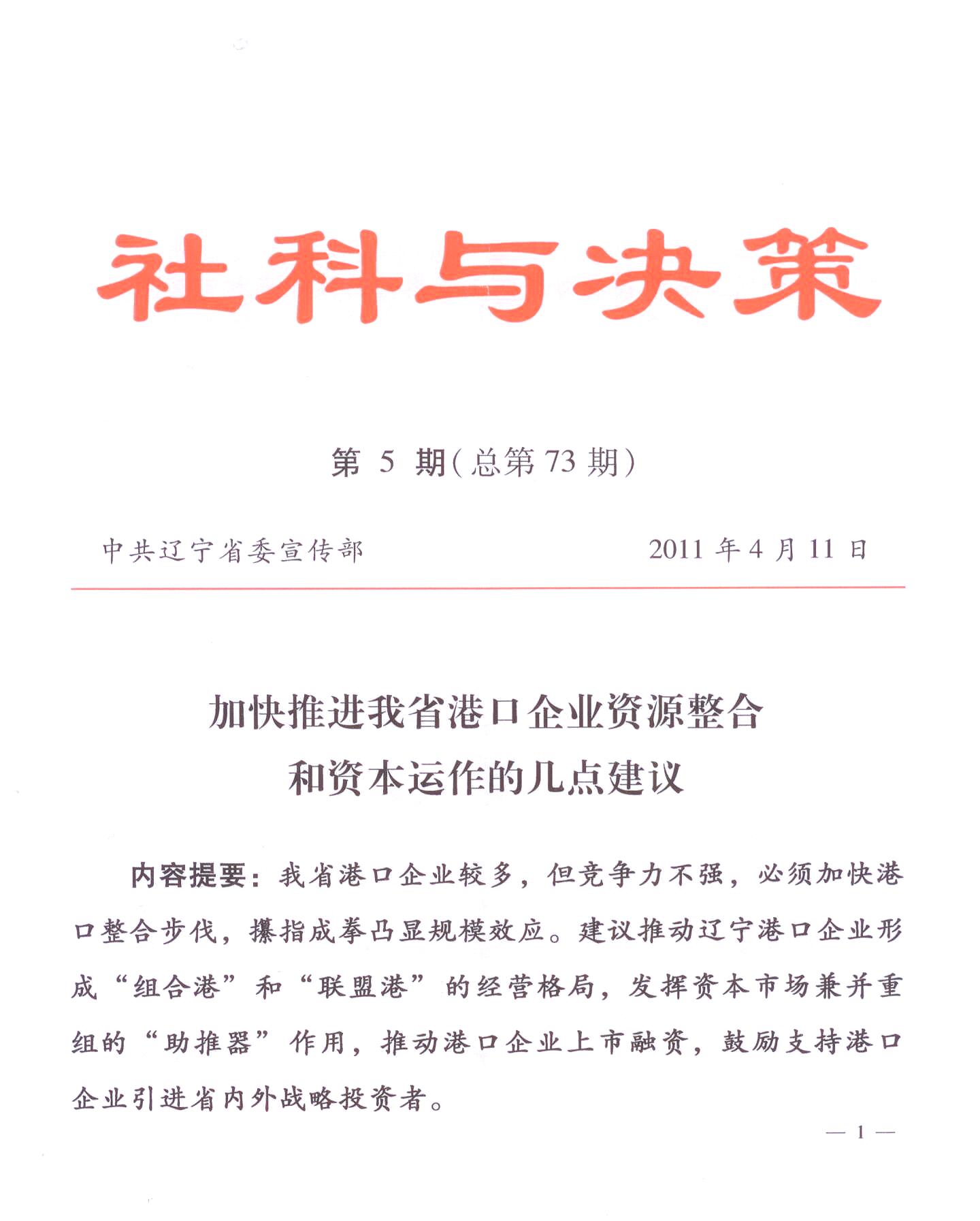 省委宣传部《社科与决策》专刊第五期刊发了我校孙宏英老师撰写的对策建议稿《加快推进我省港口行业资源整合和资本运作的几点建议》,这是我校在社会科学研究上的又一突破。