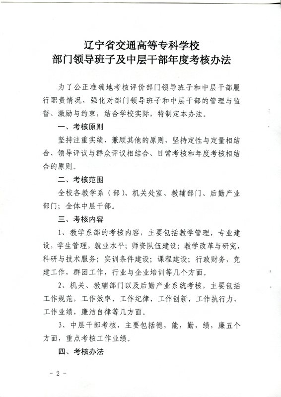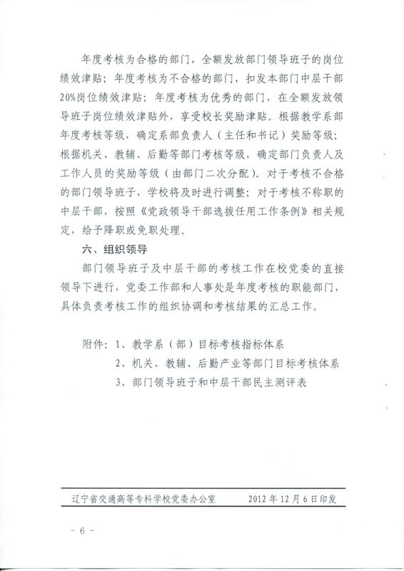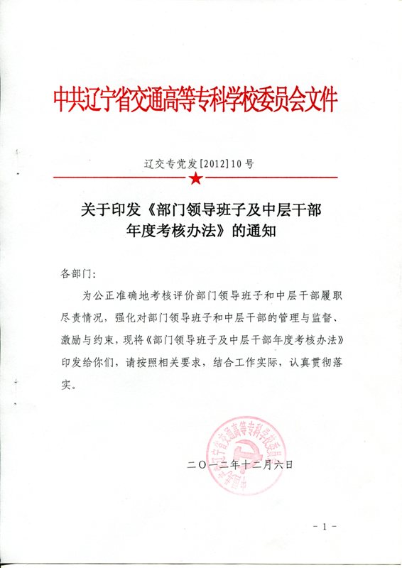 辽交专党发【2012】10号 关于印发《部门领导班子及中层干部年度考核办法)》的通知