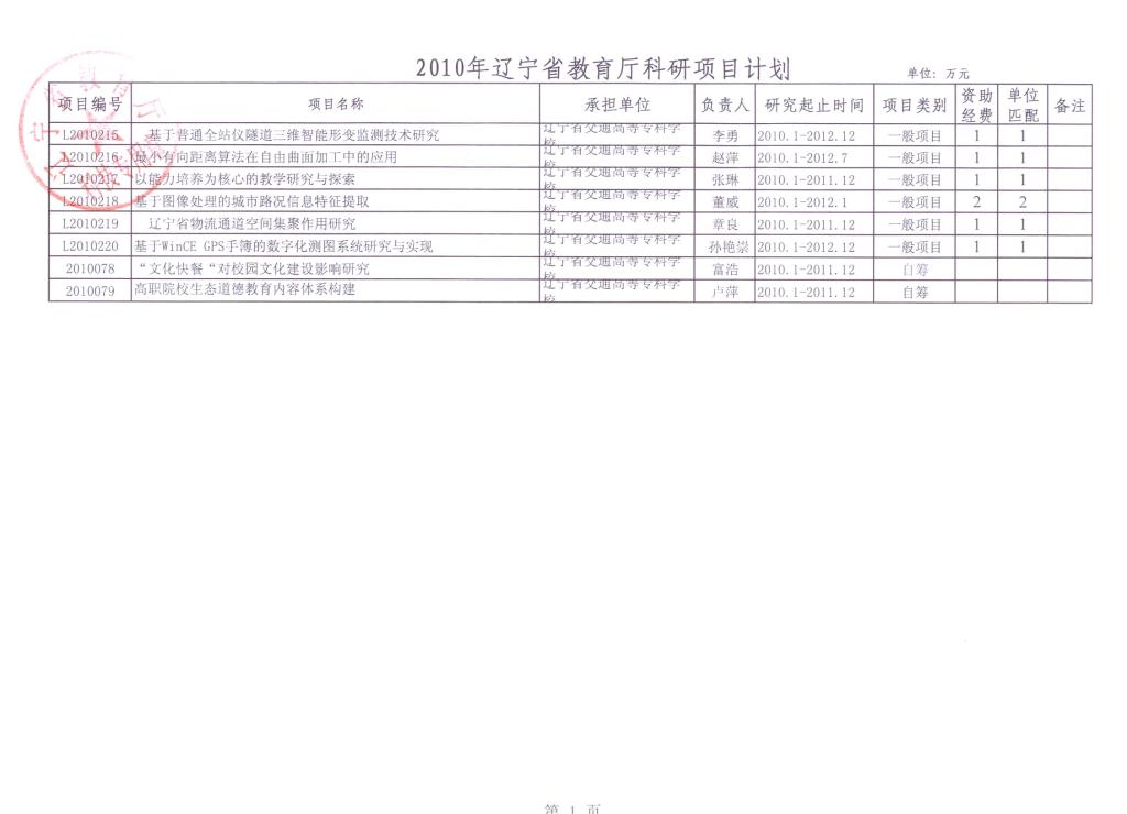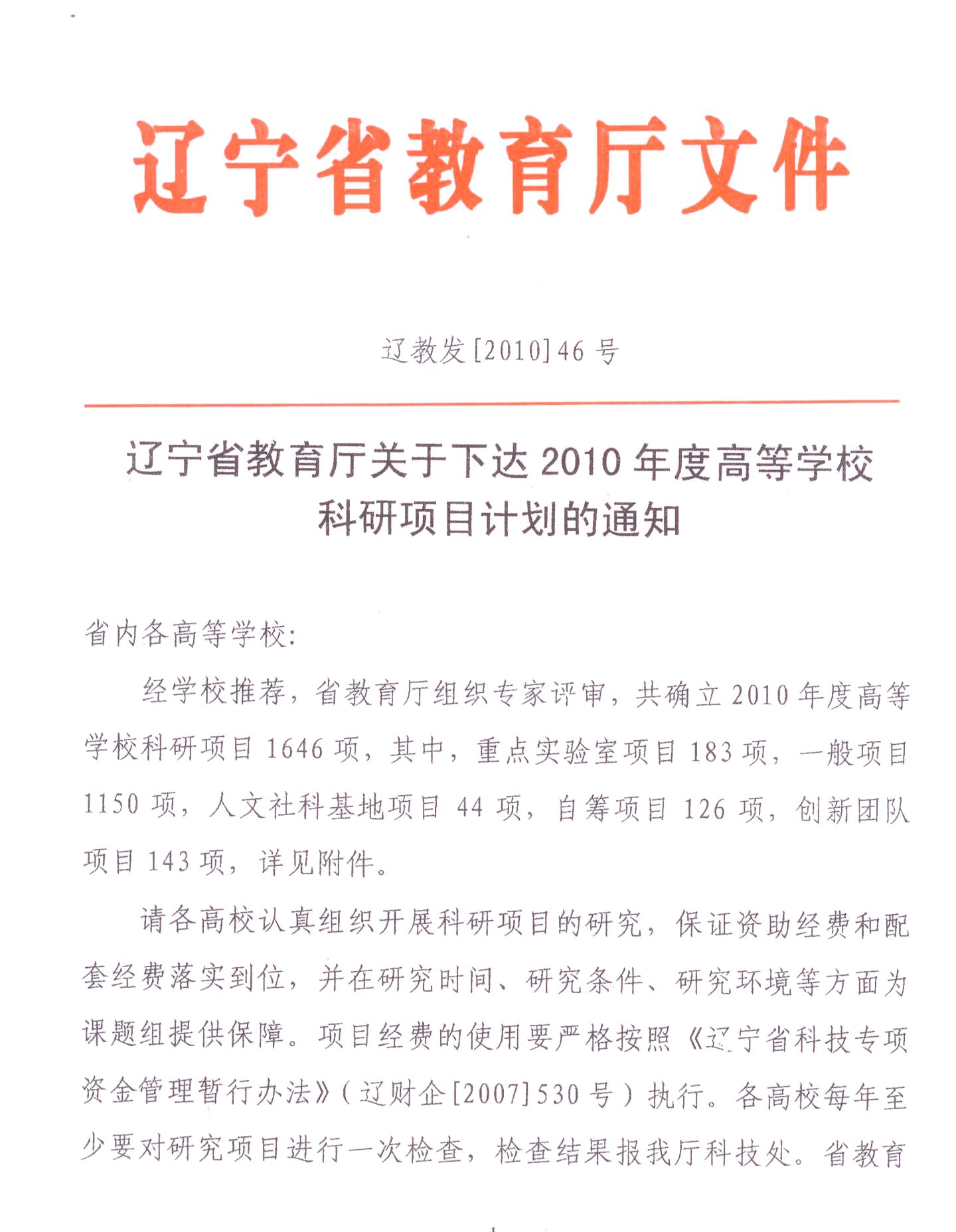 根据辽宁省教育厅关于下达2010年度高等学校科研项目计划的通知(辽教发(2010)46号),我校教师申请的14项课题中有8项被列为“辽宁省教育厅2010年度高等学校科研项目计划”。