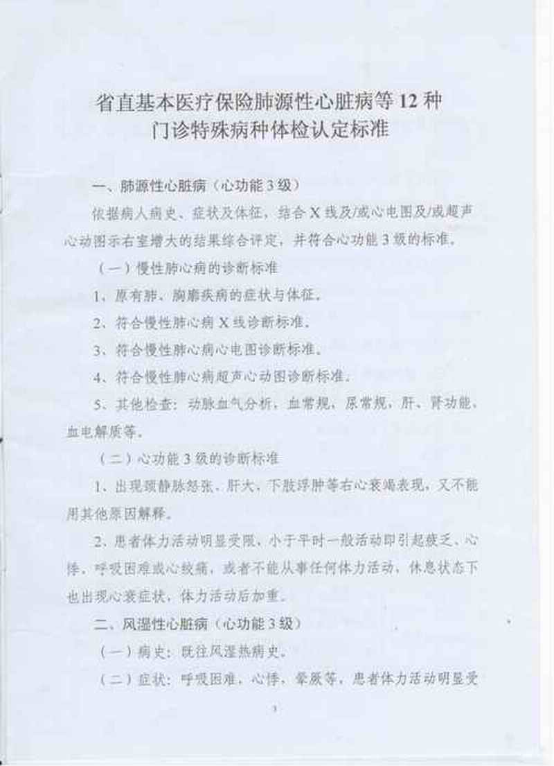 关于印发省直基本医疗保险肺源性心脏病等12种门诊特殊病种体检认定标准的通知