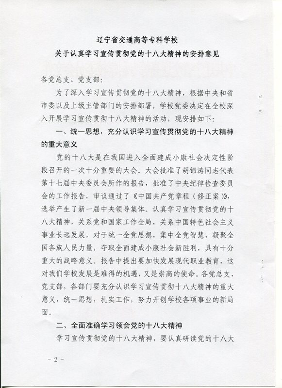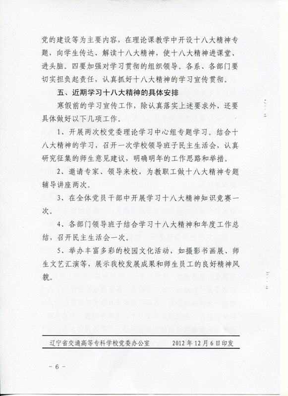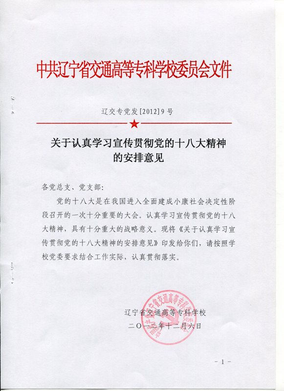 辽交专党发【2012】9号 《关于认真学习宣传贯彻党的十八大精神的安排意见》