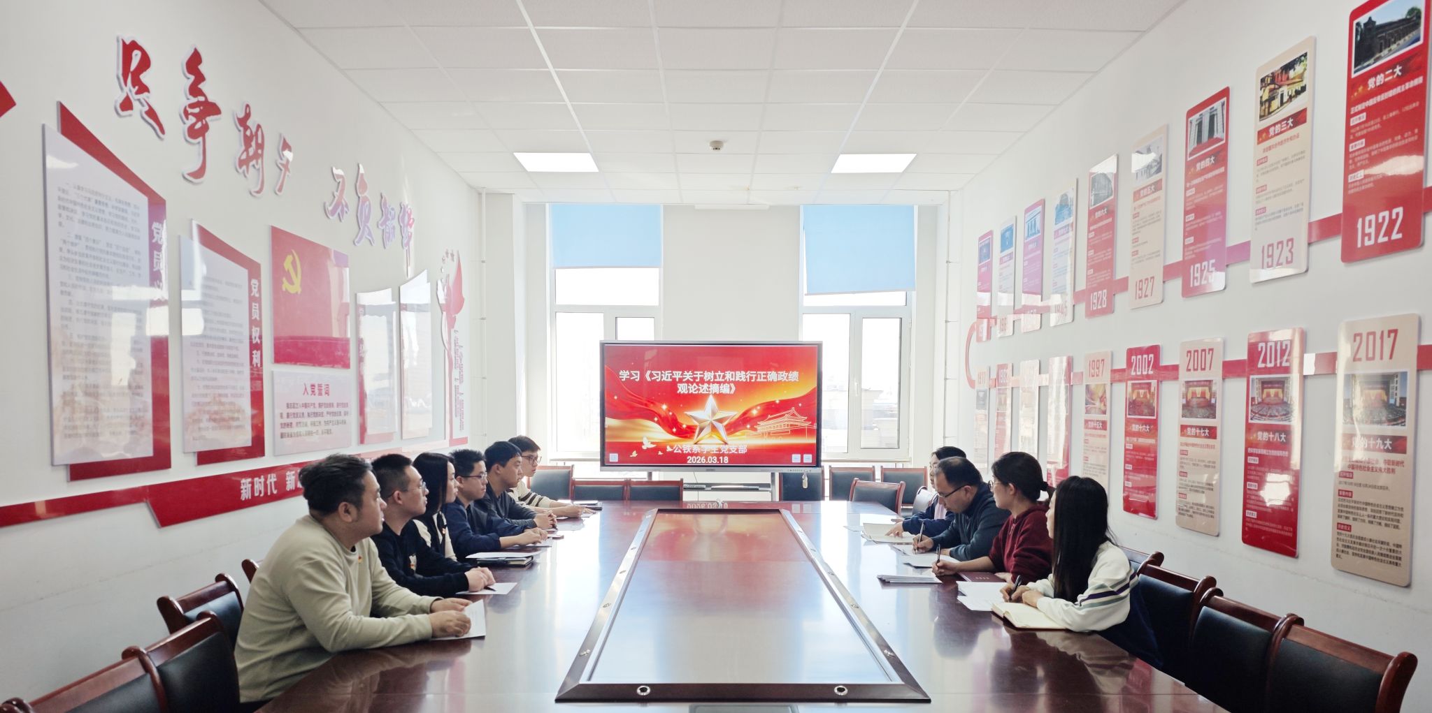 为深入学习贯彻党中央及省委、省委教育工委关于开展树立和践行正确政绩观学习教育的部署要求,引导全体党员筑牢思想根基、校准行动导向,切实把思想和行动统一到党中央决策部署上来,3月18日,公铁系教工党支部、学生党支部以“践行正确政绩观,实干担当促发展”为主题分别开展主题党日活动。