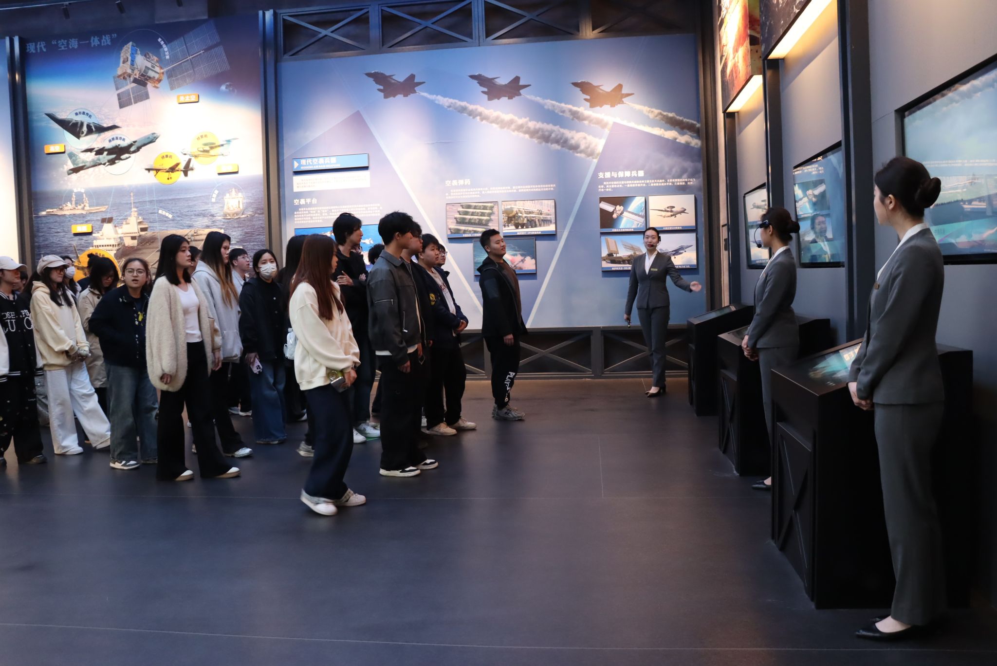 在序厅,气势恢宏的沈阳人防设施沙盘与主题浮雕映入眼帘,沙盘清晰呈现了城市地上建筑与地下防护工程的整体布局,让师生直观领略人防工程“护民、护城、护发展”的重要作用;浮雕以人防徽为核心,融合万里长城、和平鸽等元素,生动诠释了人民防空守护和平的初心使命。空袭警示录展区内,触目惊心的历史照片、真实的影像资料,系统回顾了不同历史时期空袭带来的深重灾难,深刻警示“战争阴影未远,和平需常备不懈”,让师生们对“安而不忘危、存而不忘亡”有了更真切的体悟。