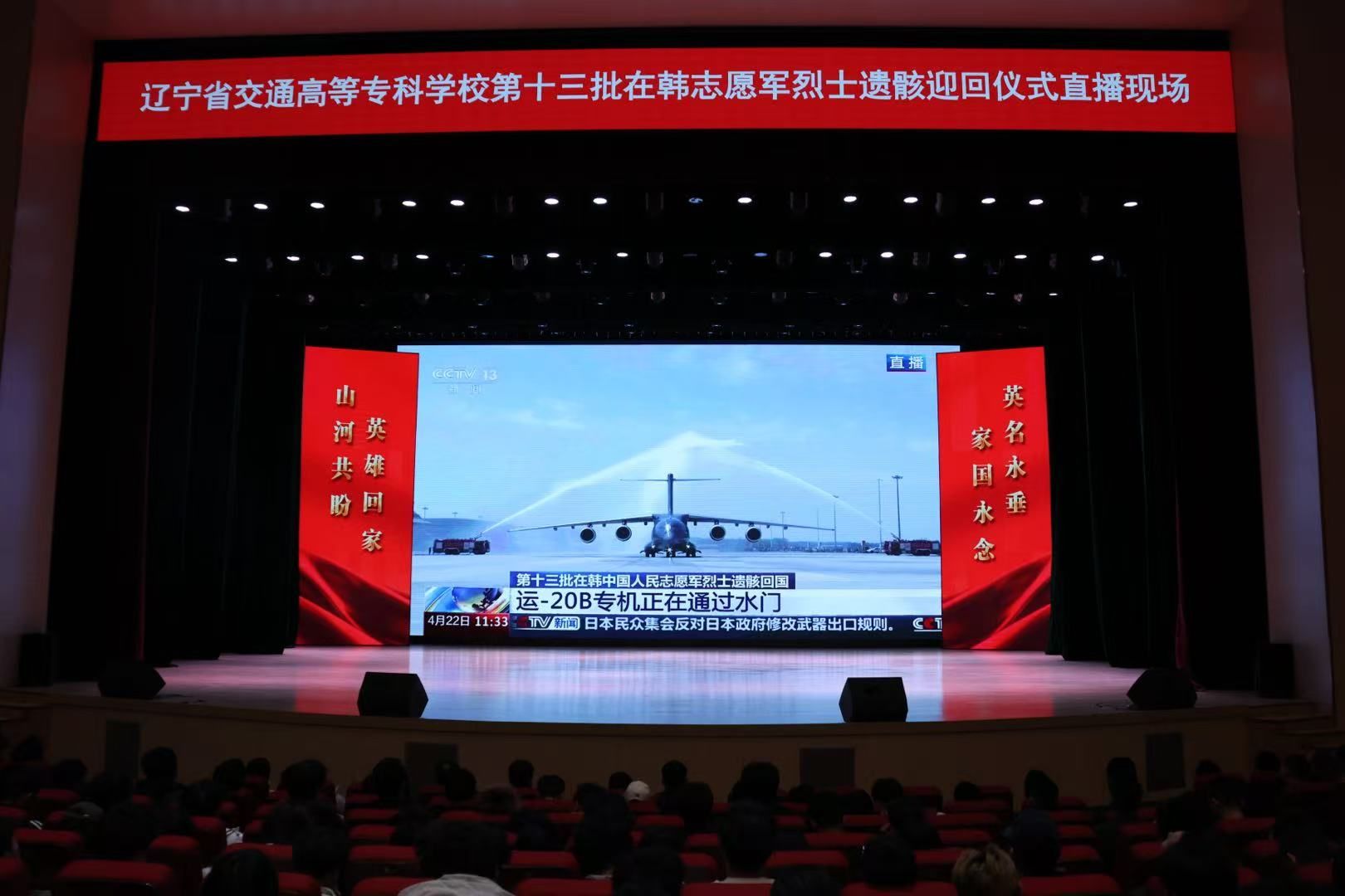 2026年4月22日,第十三批在韩中国人民志愿军烈士遗骸迎回仪式在沈阳举行。我校师生代表齐聚礼堂集中收看仪式直播,共同聆听“英雄,永不谢幕”——传承弘扬伟大抗美援朝精神大思政课,以庄严仪式致敬英烈,以红色教育铸魂育人。