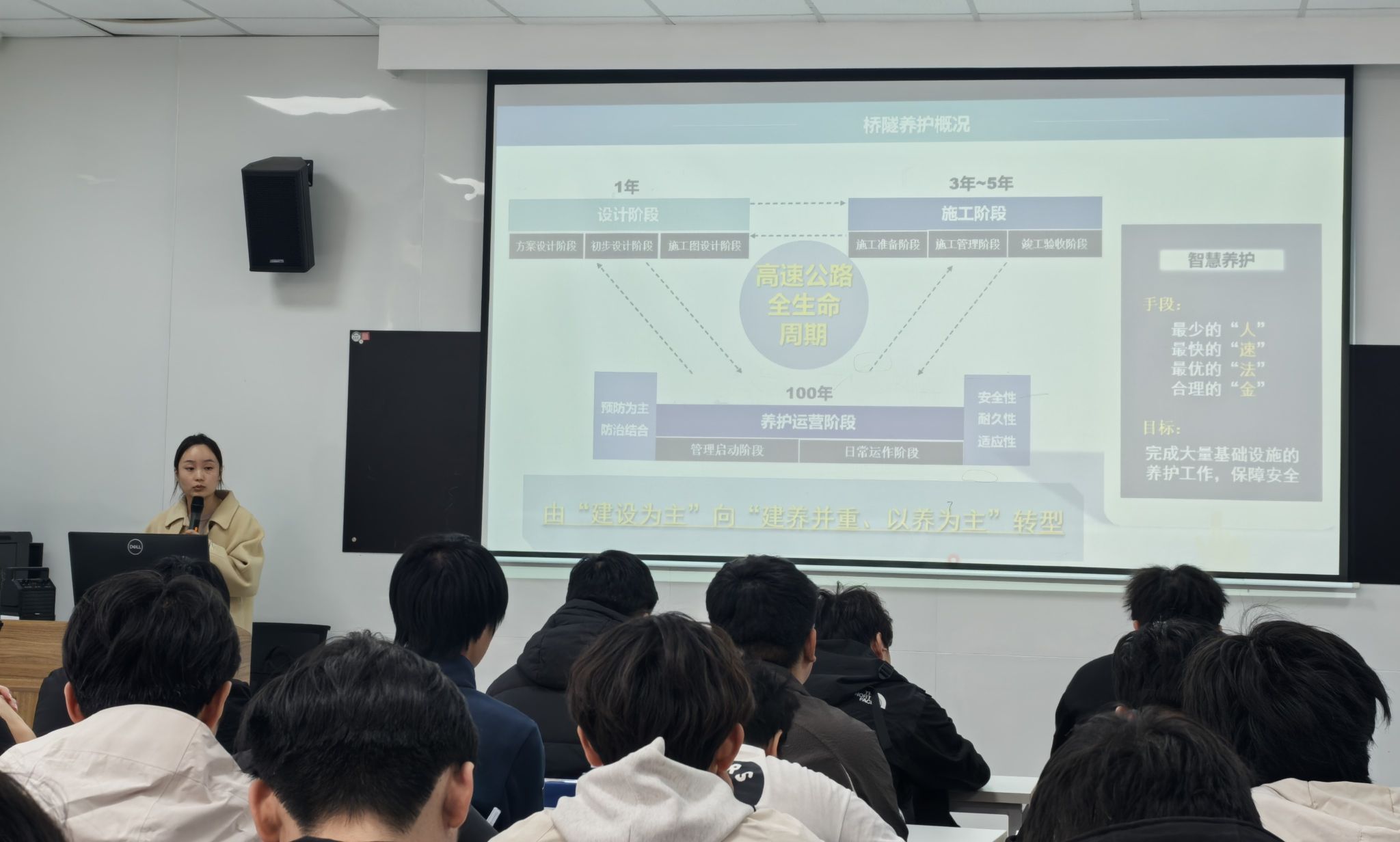 本次学术报告内容详实、专业性强、贴合行业实际,精准对接道路工程检测专业发展需求。不仅帮助师生直观了解了高速公路智慧养护领域的前沿技术与发展趋势,有效拓宽了师生的专业视野与行业认知,也为学生夯实专业基础、明确未来就业方向、助力长远职业发展筑牢了坚实根基,进一步推动了系部专业教学与行业前沿技术的深度融合。
