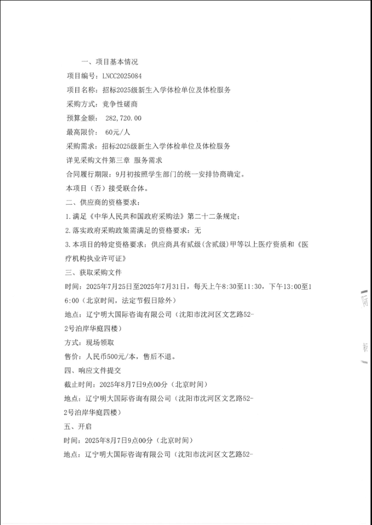 食堂后厨采购防火门项目采购公告(LNCC2025183)