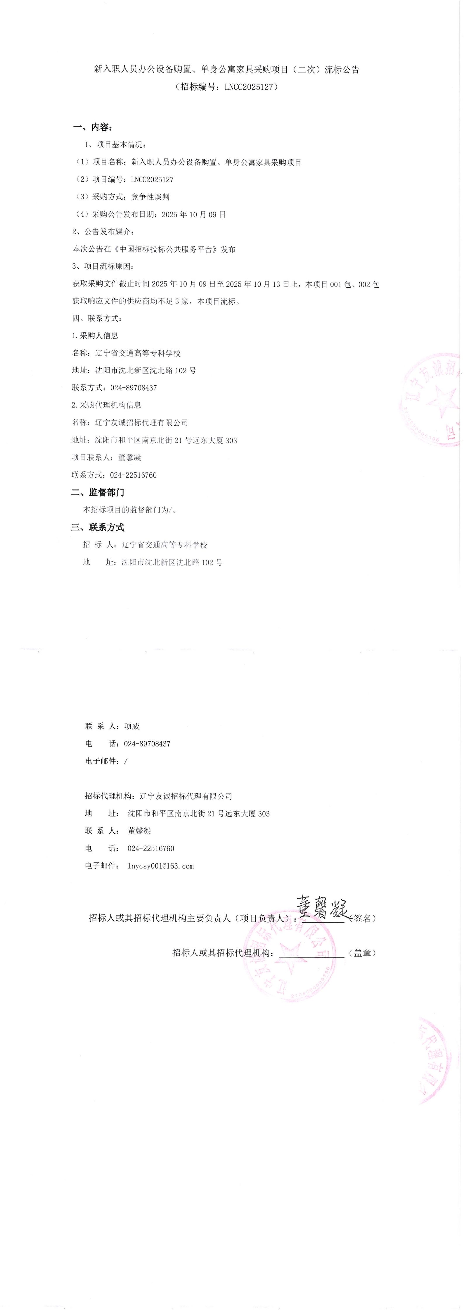 新入职人员办公设备购置、单身公寓家具采购项目招标公告(LNCC2025149)