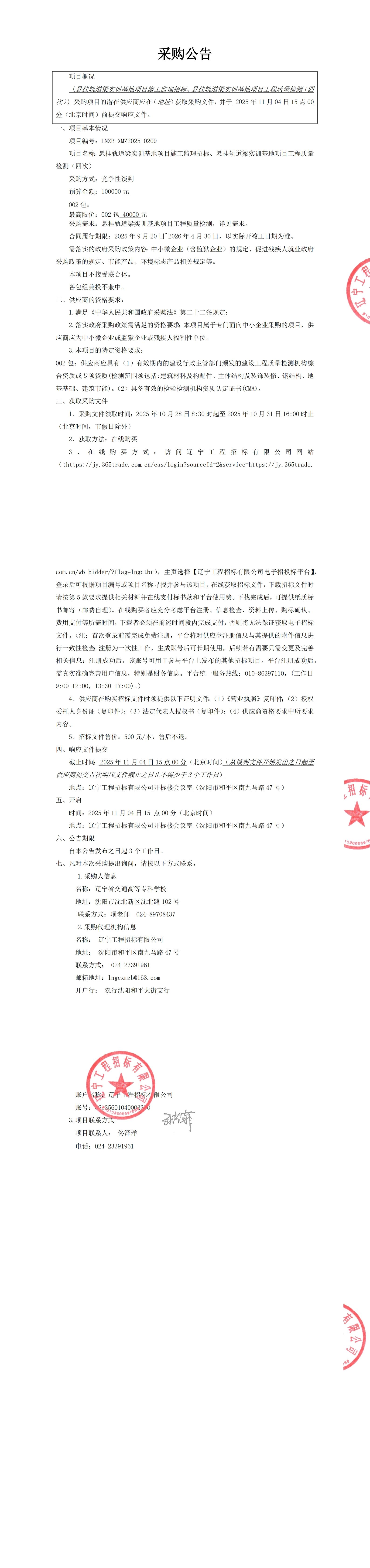 悬挂轨道梁实训基地项目施工监理招标、悬挂轨道梁实训基地项目工程质量检测(四次)-竞争性谈判公告