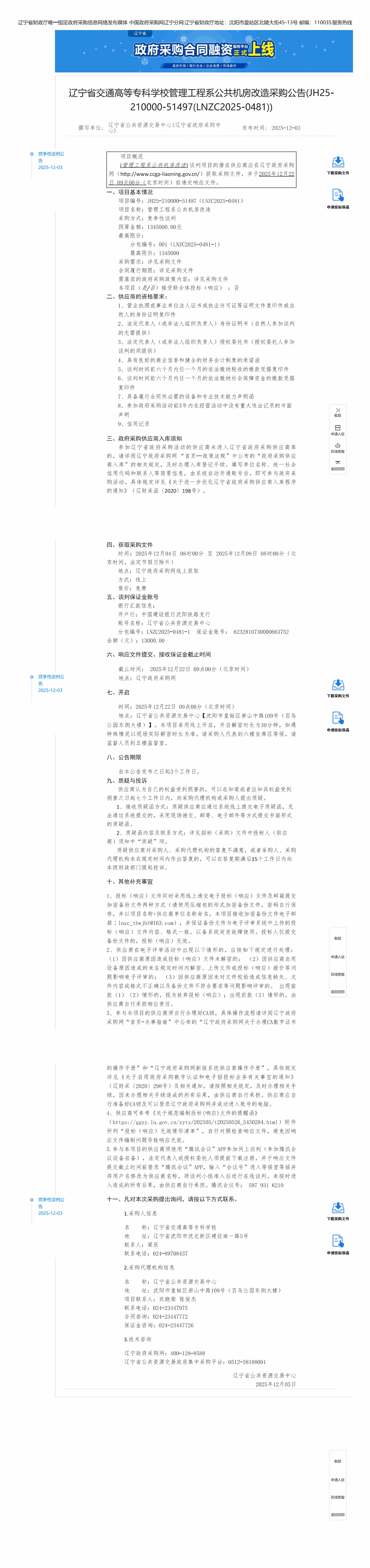 管理工程系公共机房改造项目招标公告(LNCC2025144)