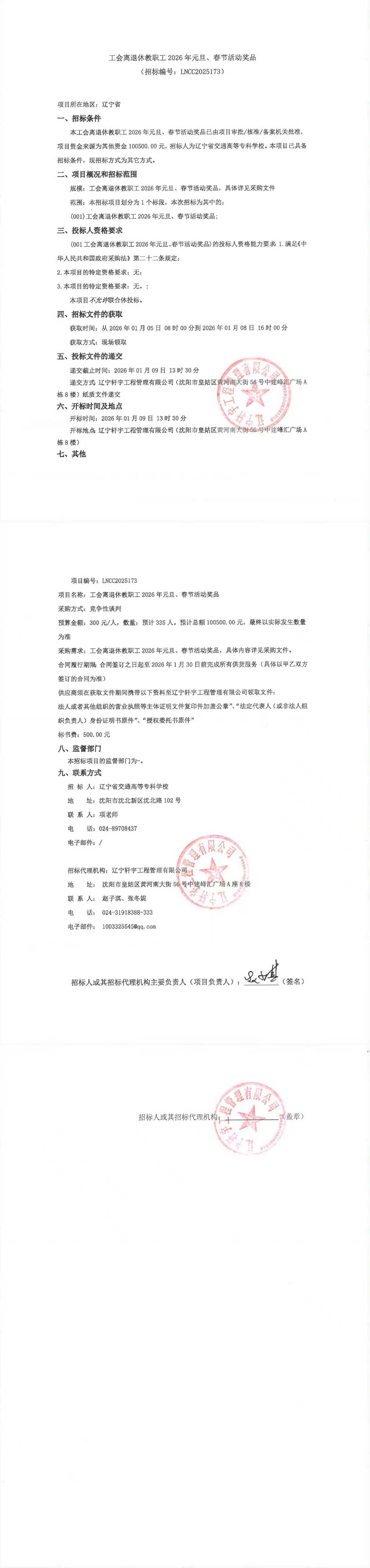 工会离退休教职工2026年元旦、春节活动奖品采购公告(LNCC2025173)