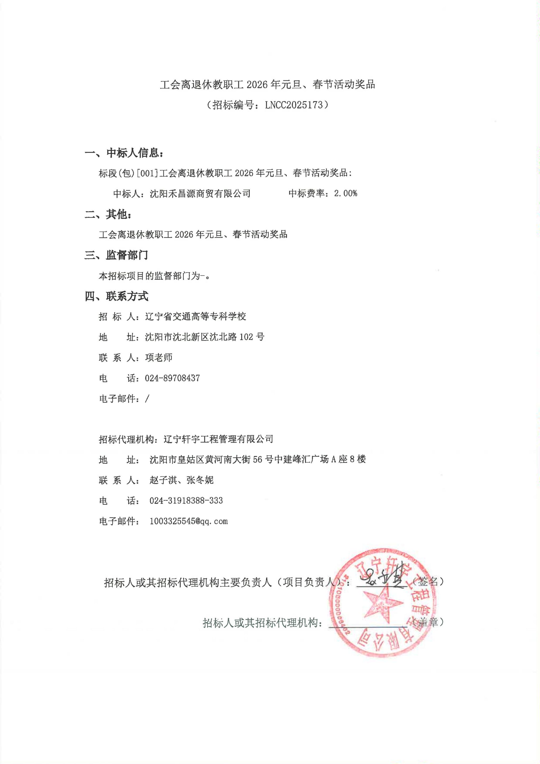工会离退休教职工2026年元旦、春节活动奖品采购公告(LNCC2025173)