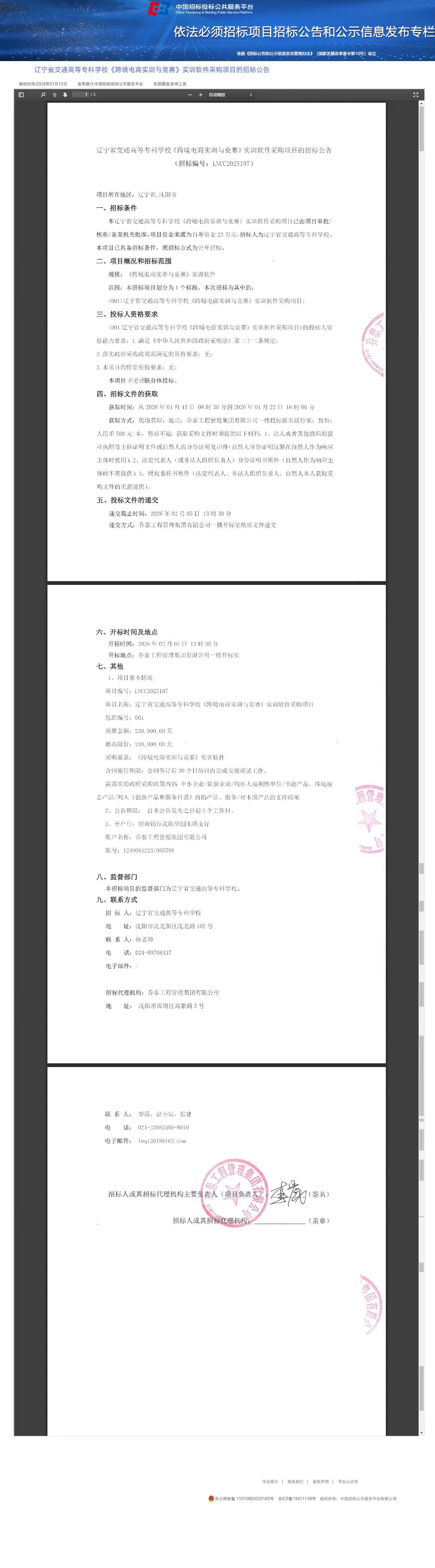 《跨境电商实训与竞赛》实训软件采购公告(LNCC2025197)