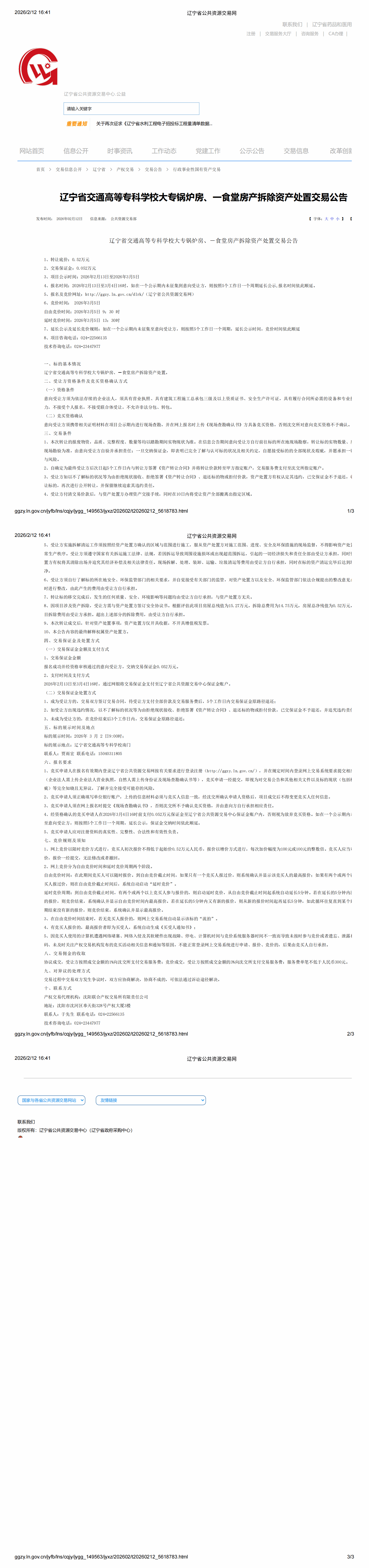 辽宁省交通高等专科学校大专锅炉房、一食堂房产拆除资产处置交易公告