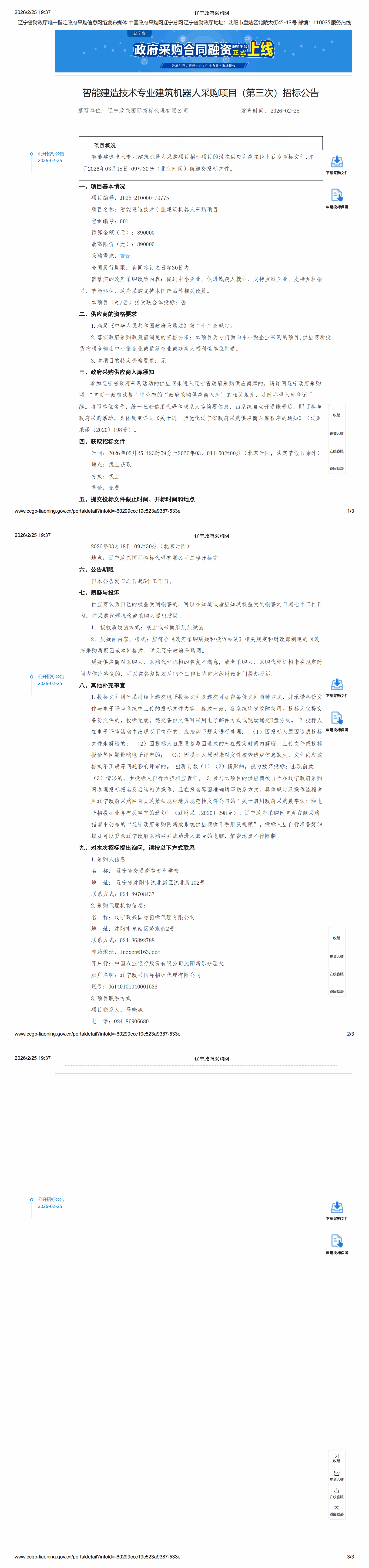 智能建造技术专业建筑机器人采购项目(第三次)招标公告