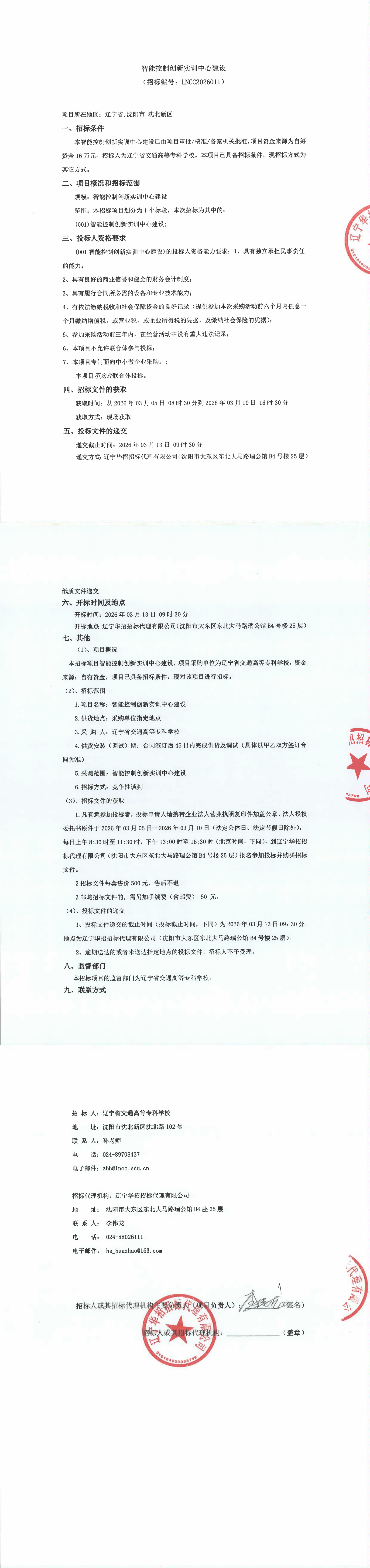 智能控制创新实训中心建设项目采购公告(LNCC2026011)