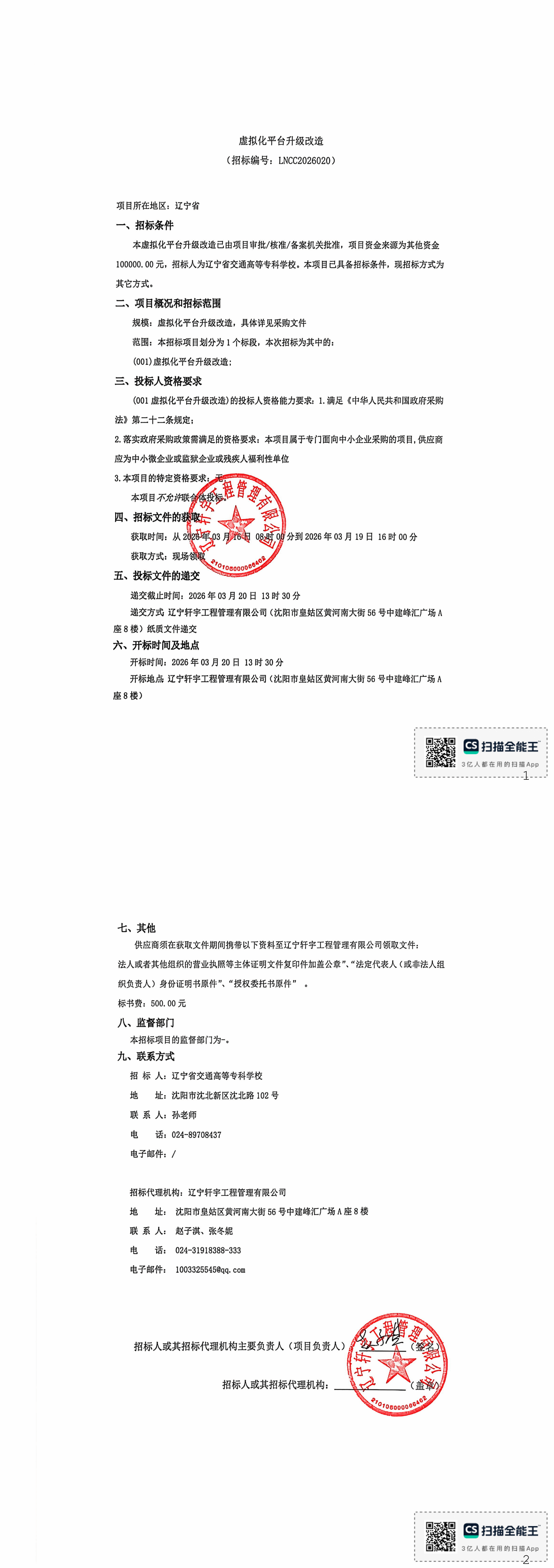 虚拟化平台升级改造项目采购公告(LNCC2026020)