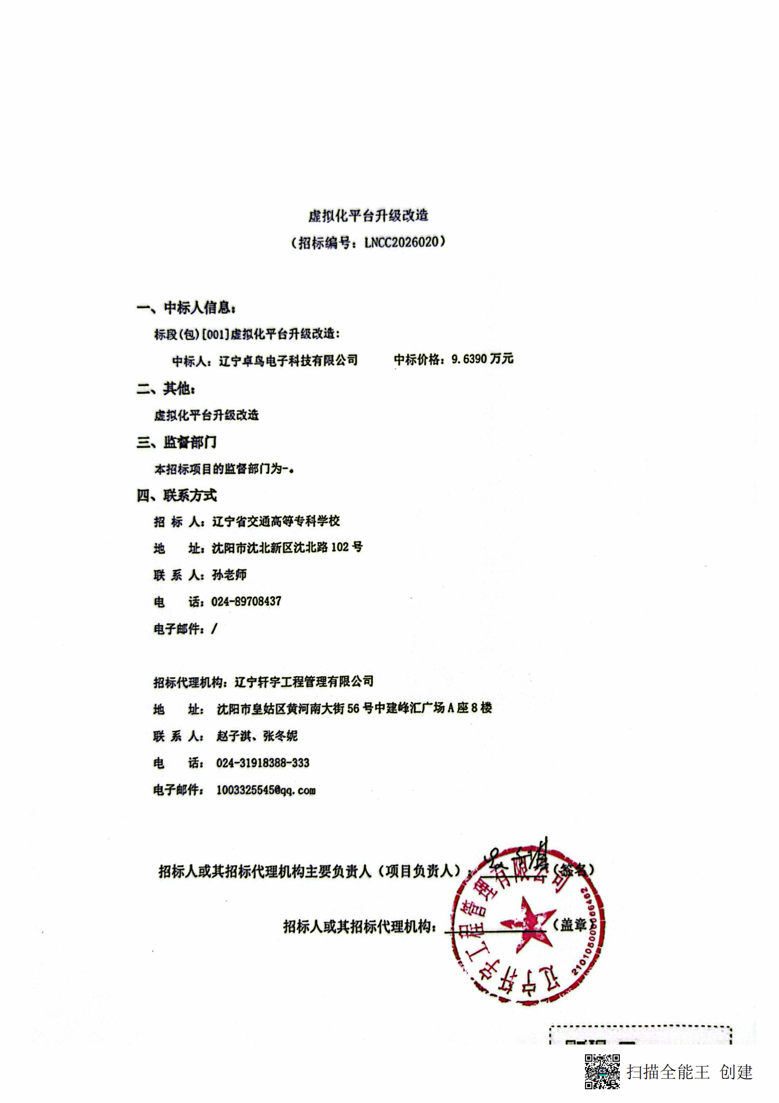 虚拟化平台升级改造采购结果公告(LNCC2026020)