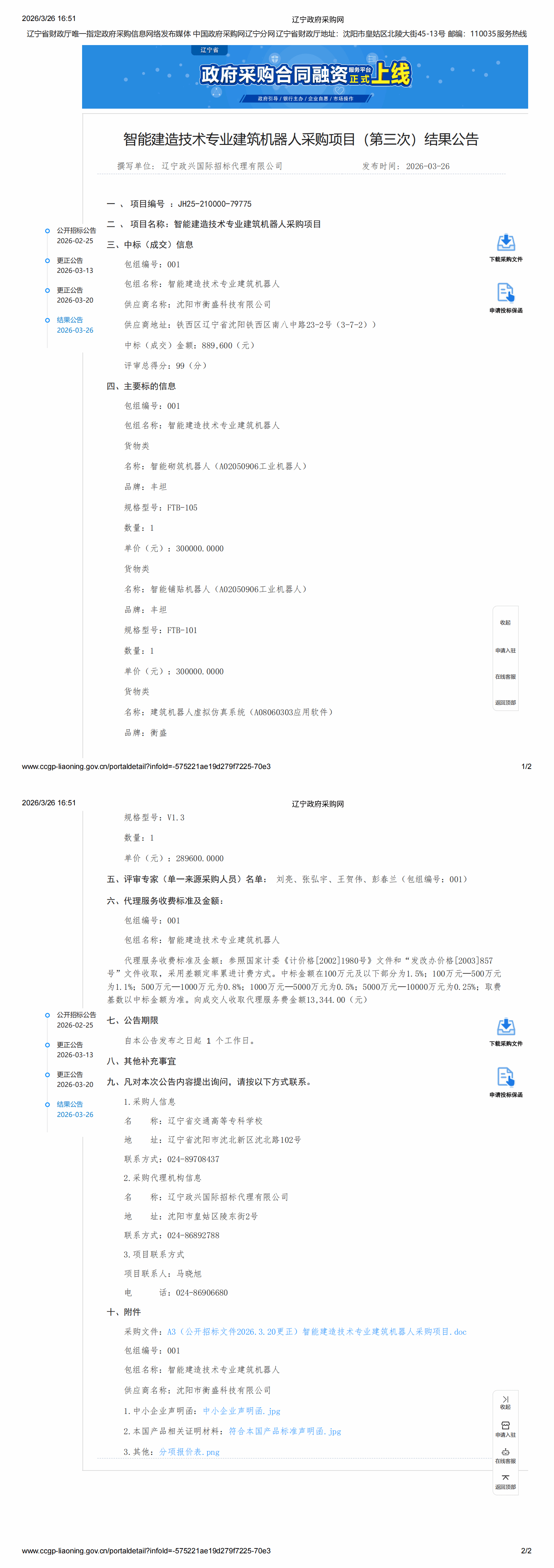 秦沈高速二期第二中心试验室改造工程采购结果公告(LNJJ20260226)