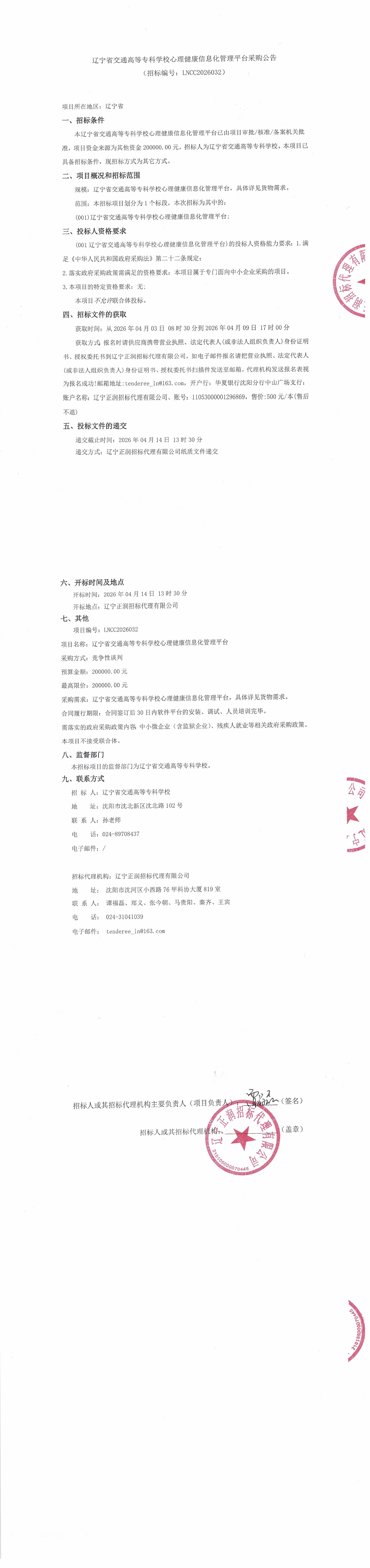 心理健康信息化管理平台采购公告(LNCC2026032)