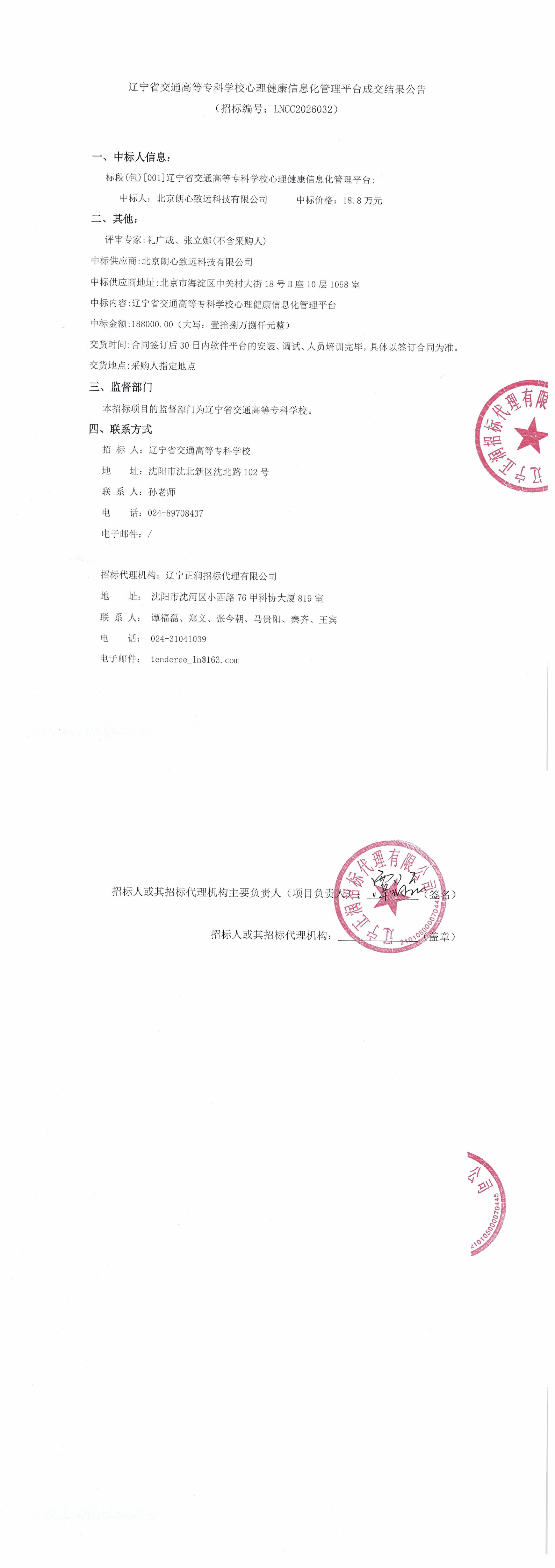 心理健康信息化管理平台采购结果公告(LNCC2026032)