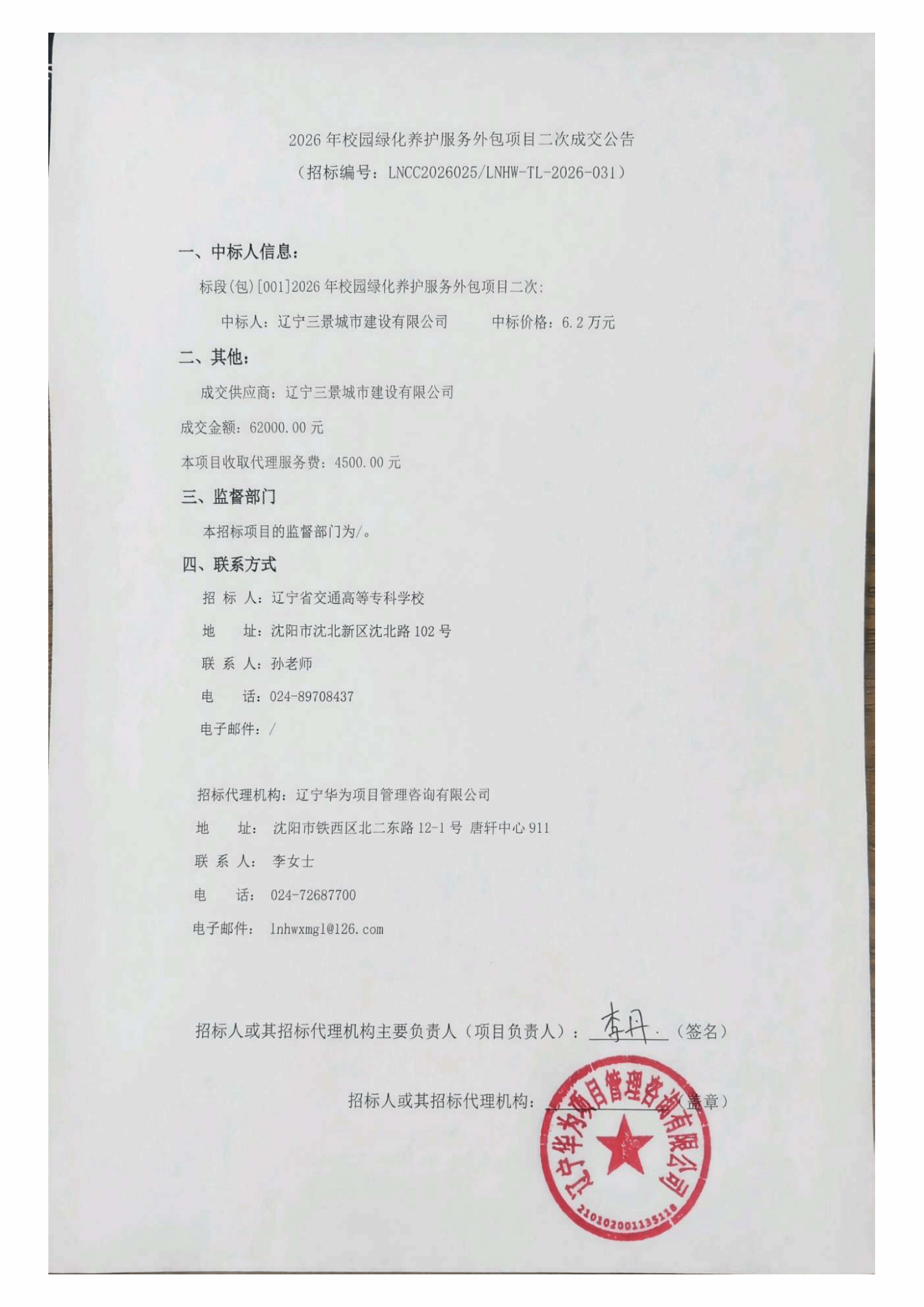 2026年校园绿化养护服务外包项目采购结果公告(LNCC2026025)
