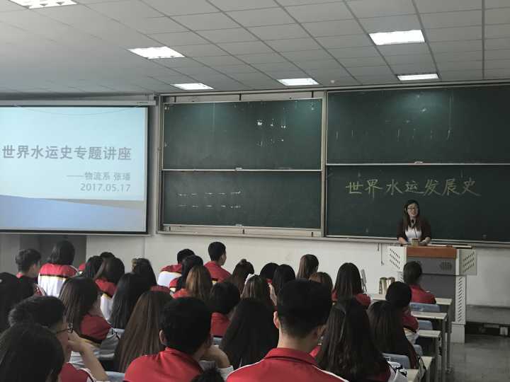 5月17日下午,物流系物流管理专业张璠老师在B阶一教室作了题为《世界水运发展史》的学术报告,报告会由港口与航运管理专业辅导员唐晓姣老师主持。港口与航运管理专业大一、大二全体学生参加了报告会。
