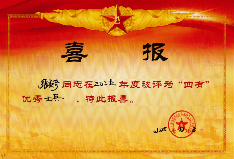 近日,一封来自中国人民武装警察部队齐齐哈尔支队的喜报寄达我校,我校学子张圣奇同学在部队表现优异,被评为2025年度“四有”优秀士兵,为母校增光!